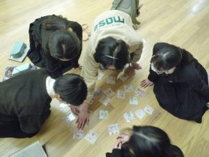 アクティビティで中学生たちと一緒に英語カルタをしました。