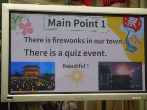 地域のイベントを紹介する生徒たちの発表スライド