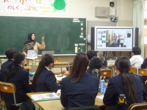 授業の前半は、生徒たちから奈良のお勧めの場所やイベント、学校行事などを紹介する発表がありました。後半は、ムニラさんがバングラデシュの生活や文化について紹介してくれました。