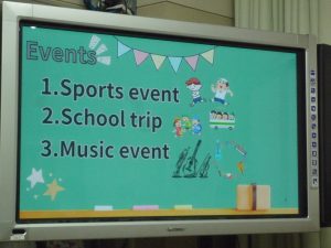 学校生活を紹介する生徒たちの発表スライド